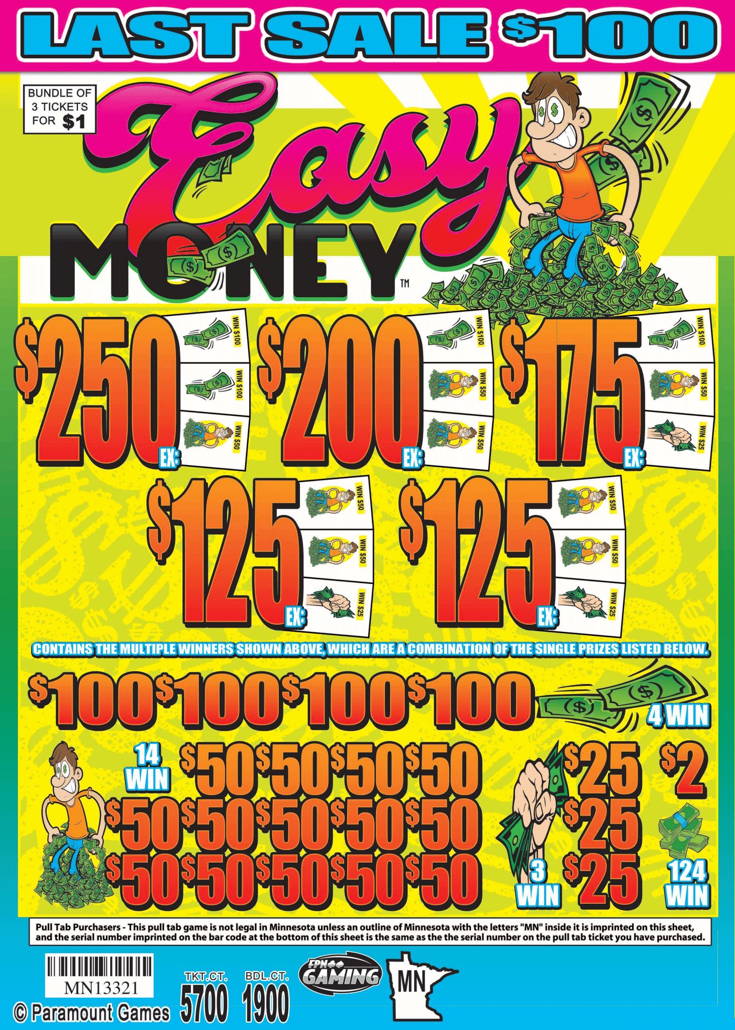 1900 tickets, Pink Foil Total Payout - $1,523 Ideal Profit - $377 Payout % - 80% Profit % - 20% 12 Deals/Case Last Sale $100