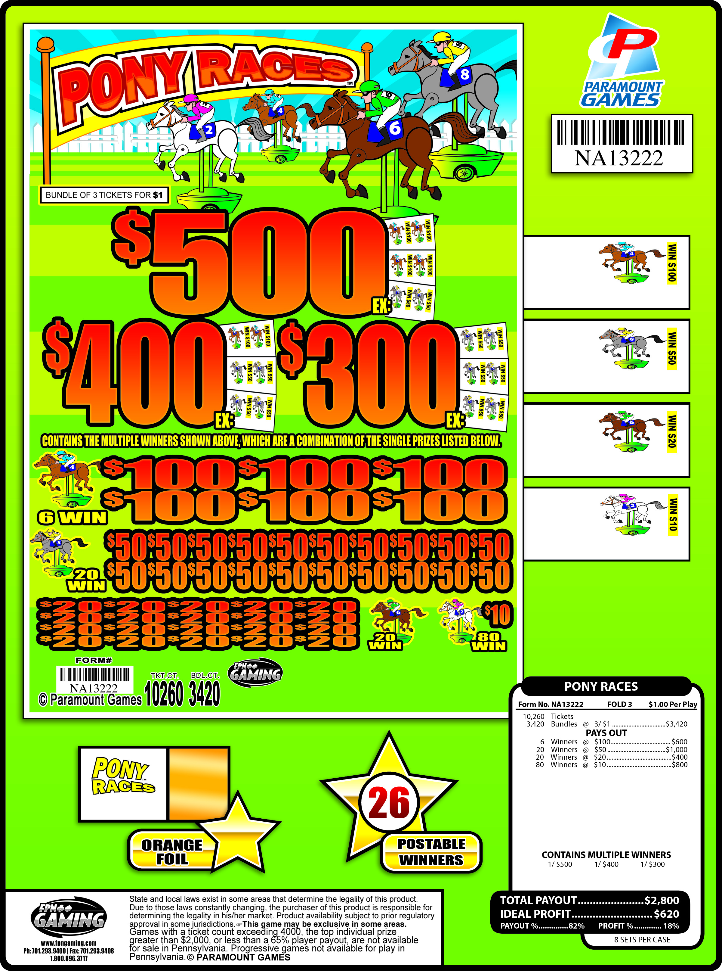 3420 tickets, Orange Foil Total Payout - $2,800 Ideal Profit - $620 Payout % - 82% Profit % - 18% 8 Deals/Case