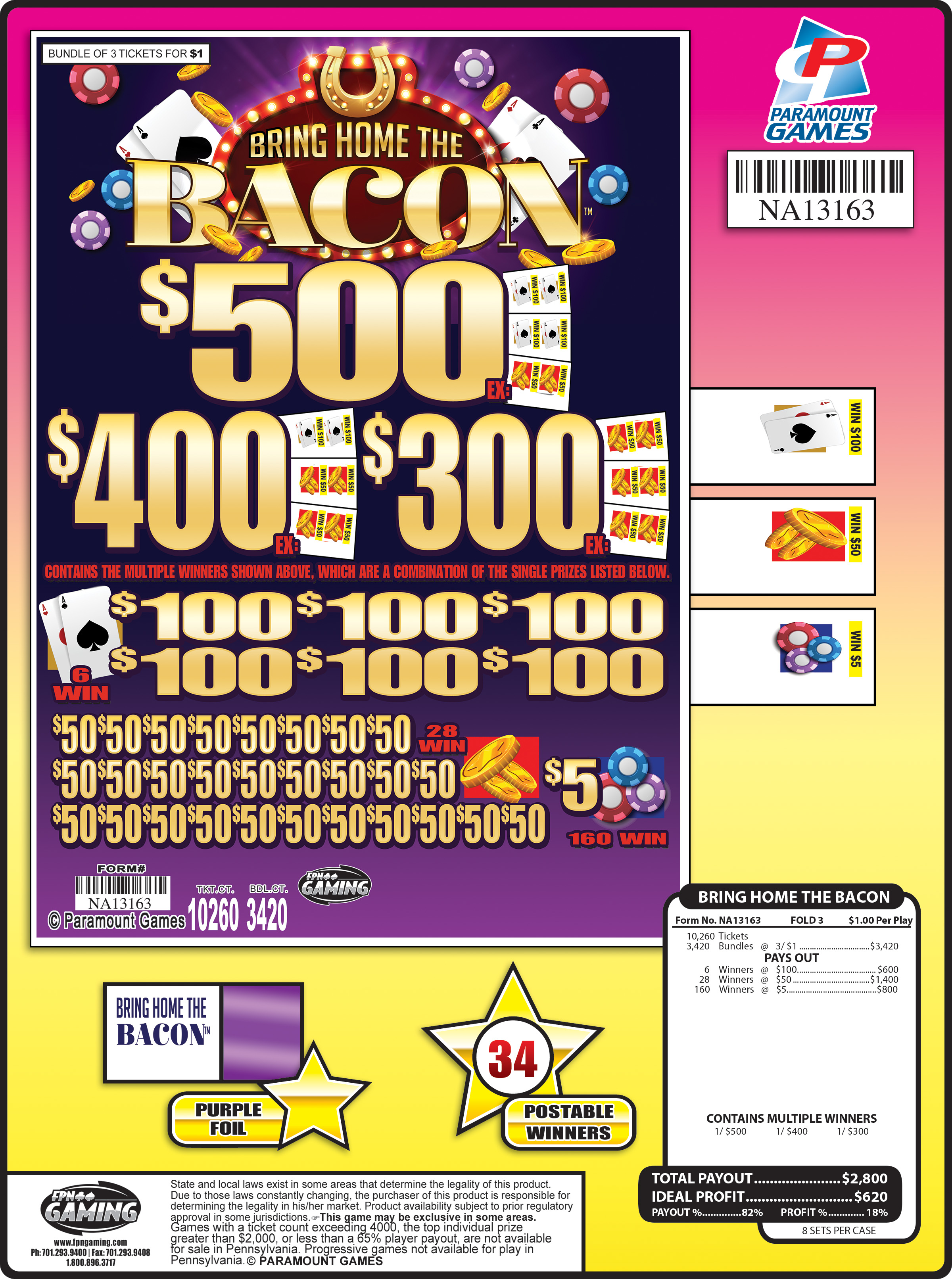 3420 tickets, Purple Foil Total Payout - $2,800 Ideal Profit - $620 Payout % - 82% Profit % - 18% 8 Deals/Case