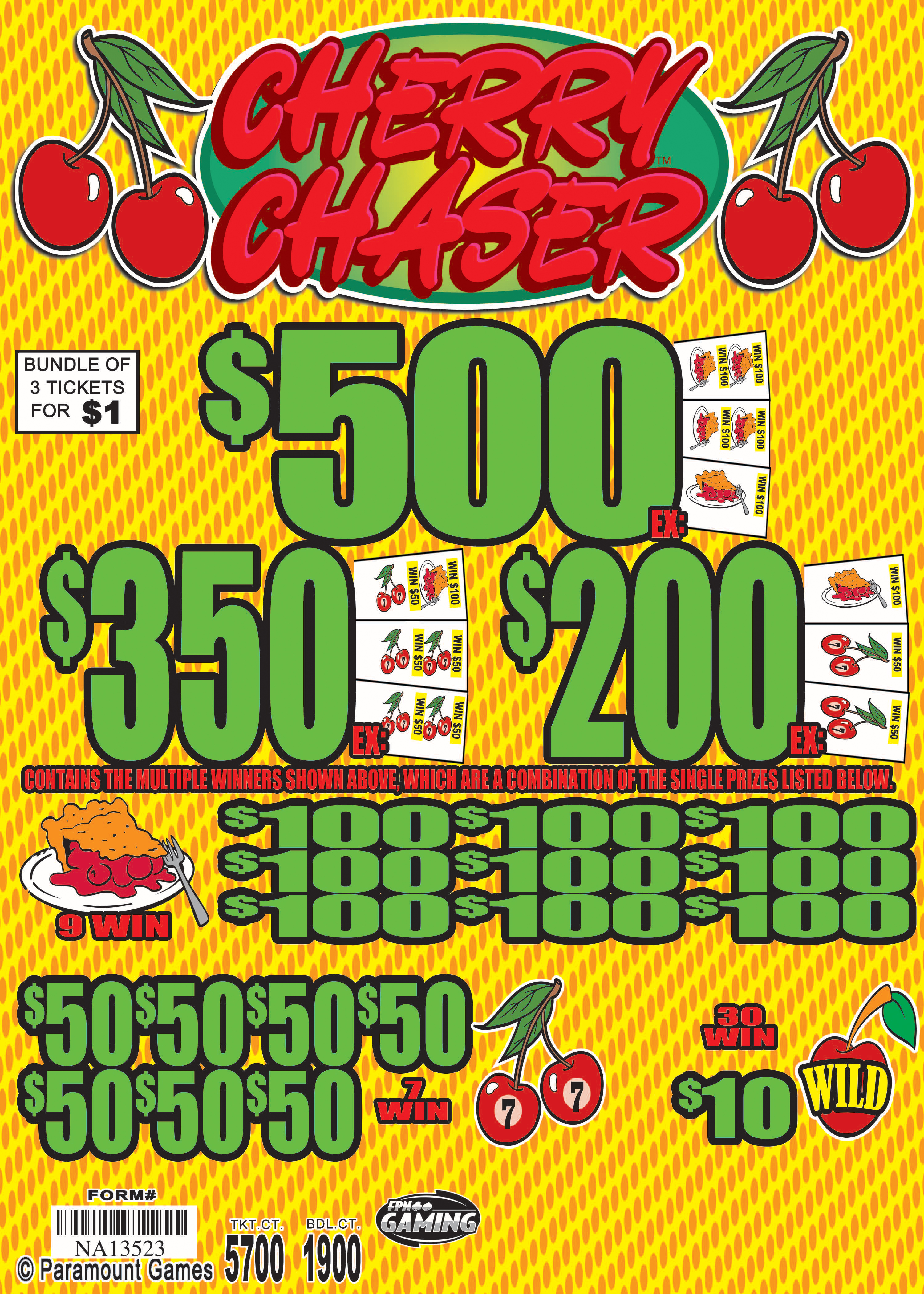 1900 tickets, Rose Foil Total Payout - $1,550 Ideal Profit - $350 Payout % - 82% Profit % - 18% 12 Deals/Case